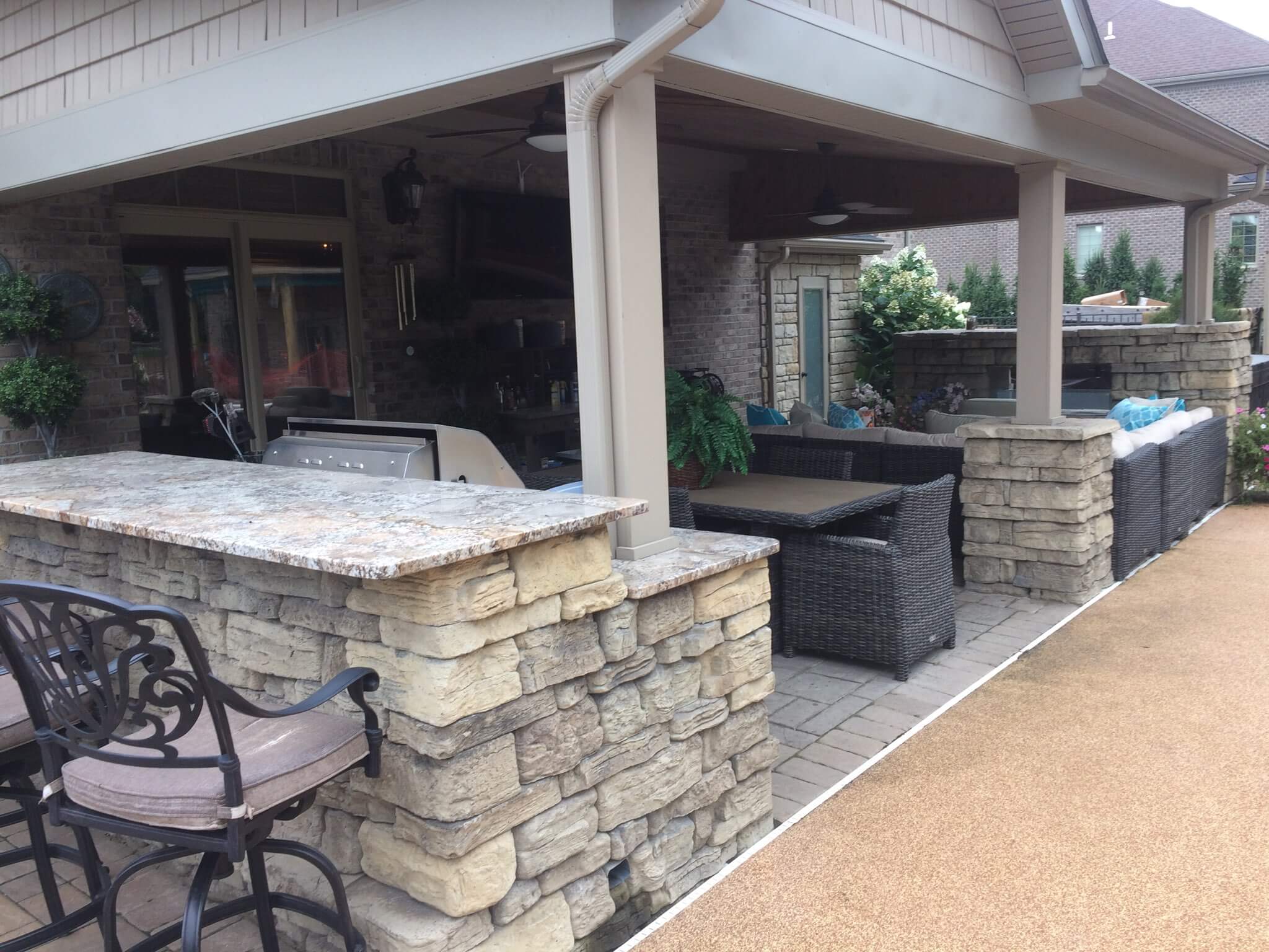There isn’t much that can make your outdoor living space more livable than a custom outdoor bar or kitchen. That personalized outdoor area is not far away and easily built using our full line of hardscaping products.